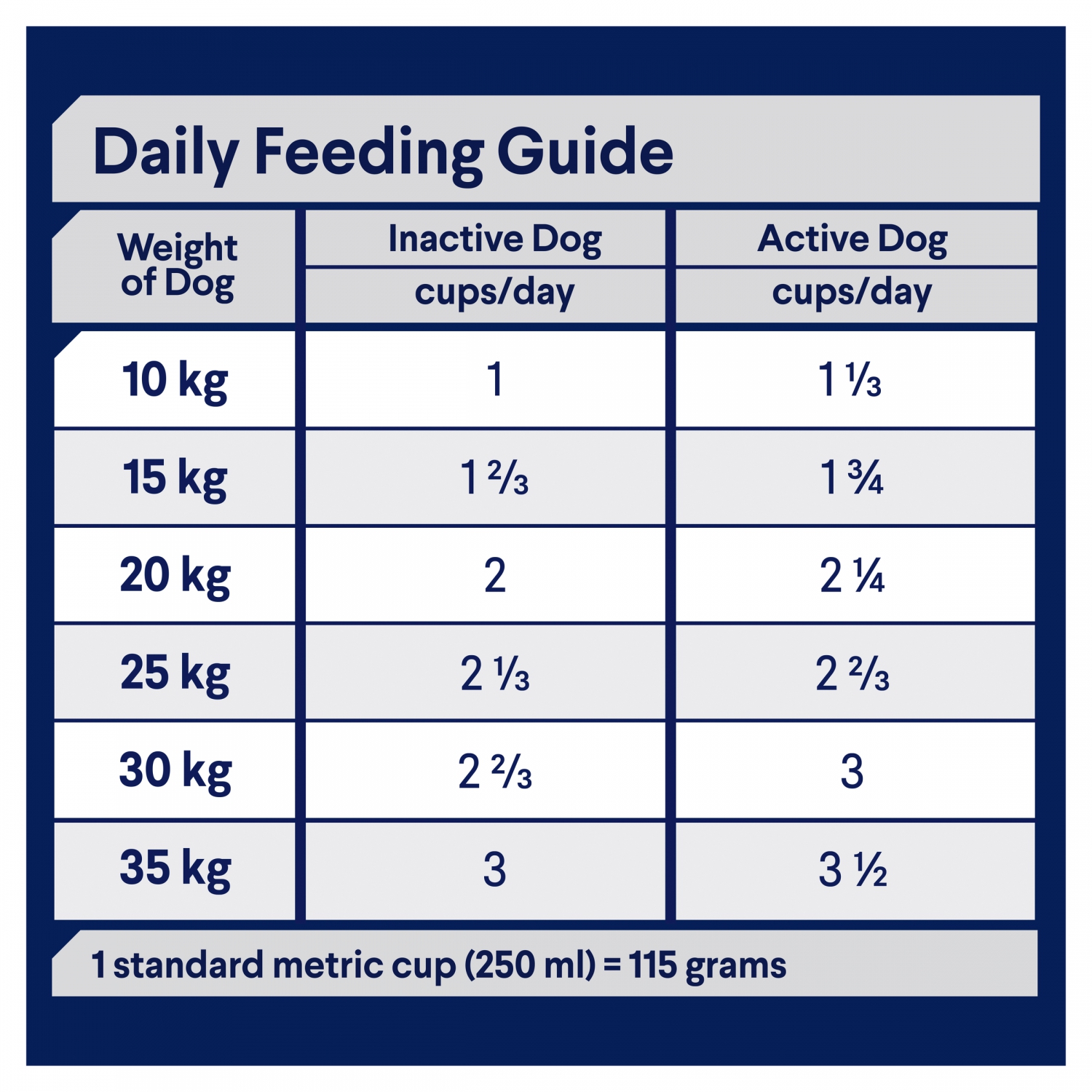 68 Feeding days based on 15 kg adult dog inactive feeding guide. When feeding both ADVANCE™ Dry and Wet food, simply halve the recommended quantities of each product and let your pet enjoy the benefits of both formats.