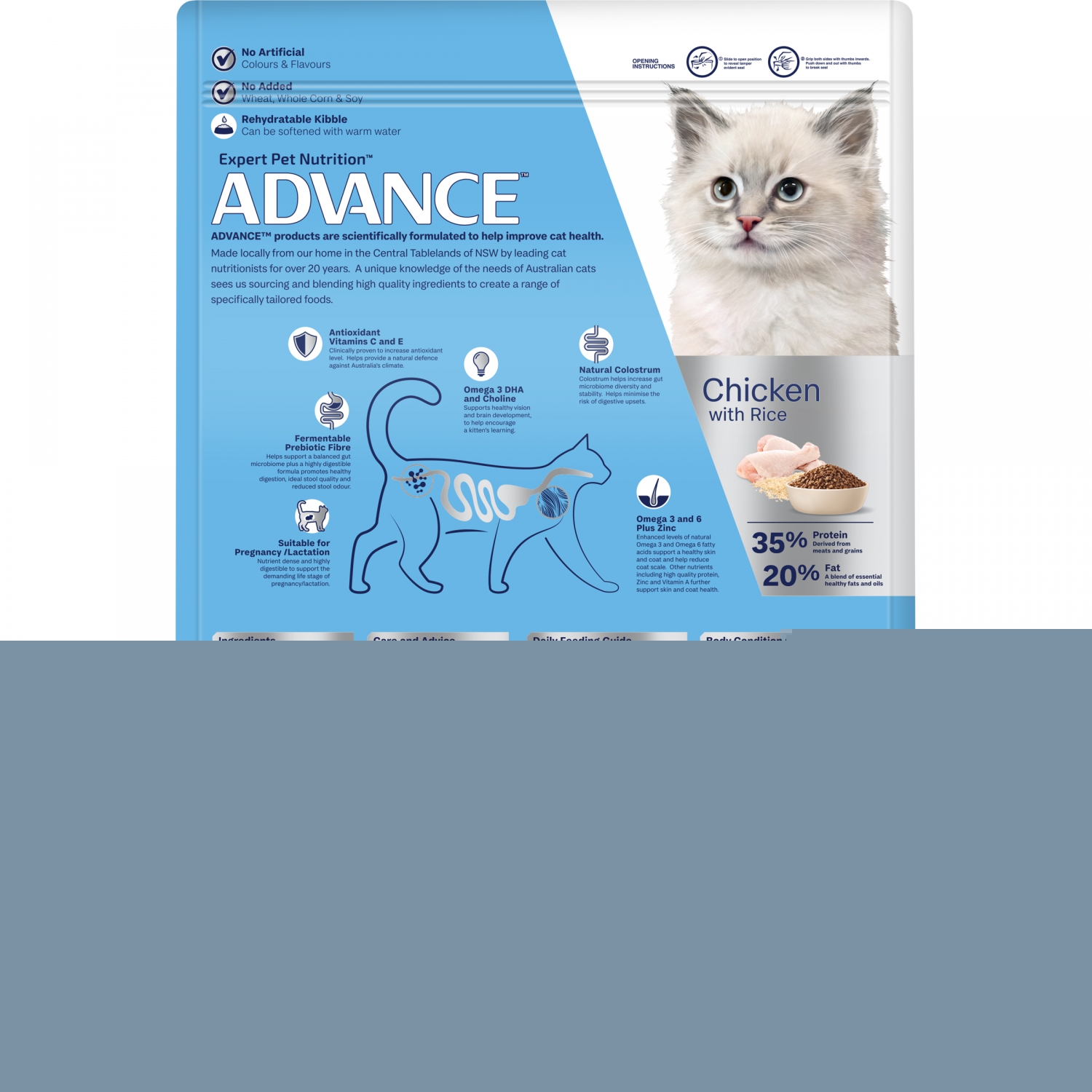 ADVANCE products are scientifically formulated to help improve cat health. Made locally from our home in the Central Tablelands of NSW by leading cat nutritionists for over 20 years. A unique knowledge of the needs of Australian cats sees us sourcing and blending high quality ingredients to create a range of specifically tailored foods.