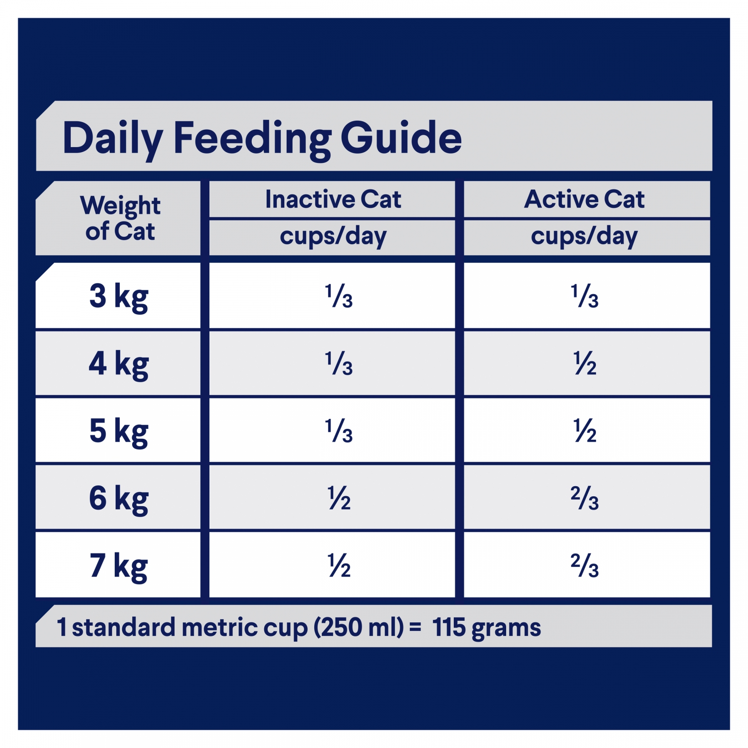 52 Feeding days based on 4 kg adult cat inactive feeding guide. When feeding both ADVANCE™ Dry and Wet food, simply halve the recommended quantities of each product and let your pet enjoy the benefits of both formats.