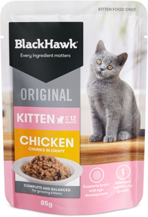 Black Hawk cat foods are formulated to meet the nutritional levels established in the AAFCO Cat Food Nutrient Profiles for maintenance.