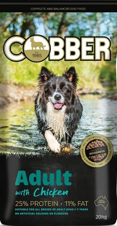 Cobber® Adult Chicken is a complete dog food, meeting the nutritional levels established by the Association of American Feed Control Officials (AAFCO) for maintenance of adult dogs.