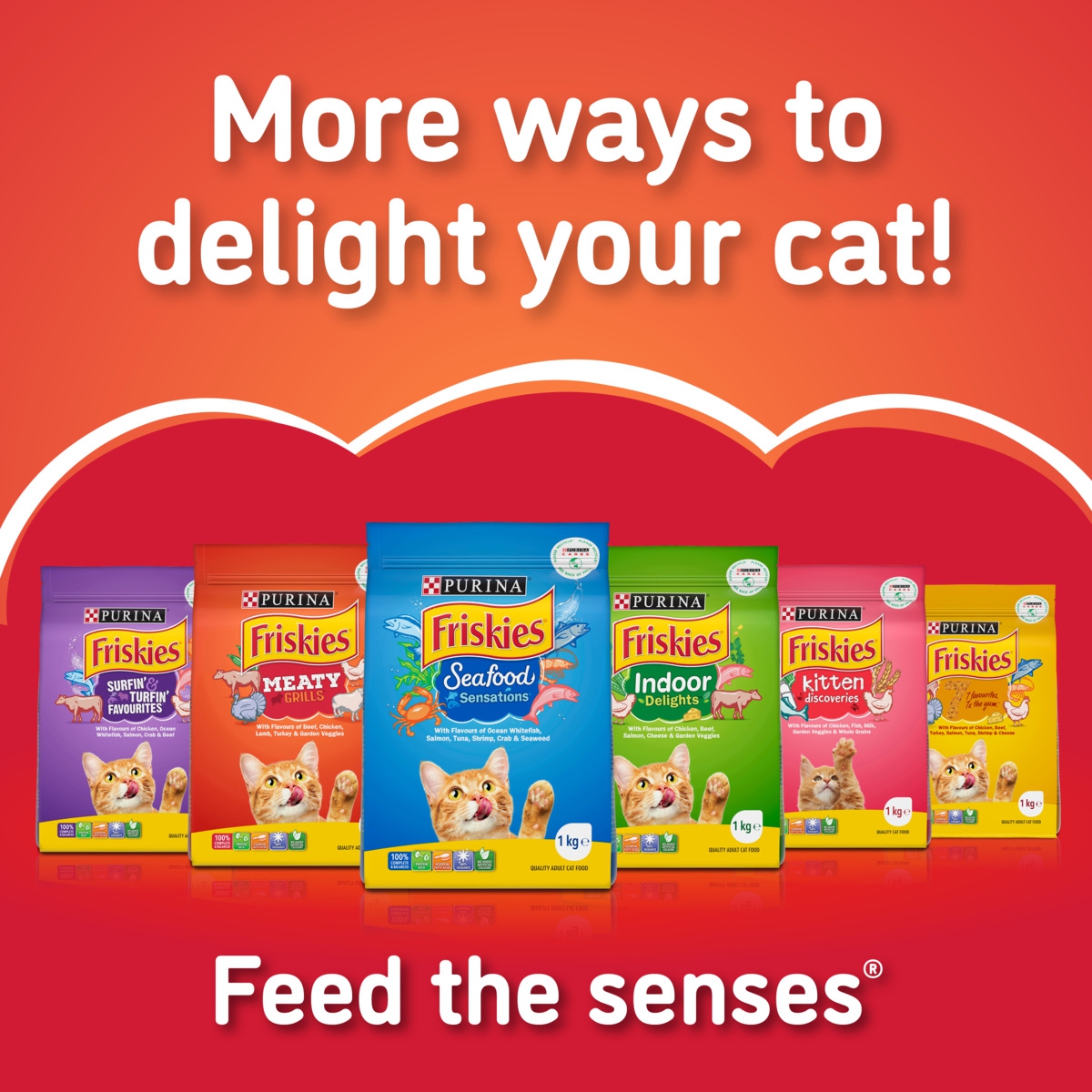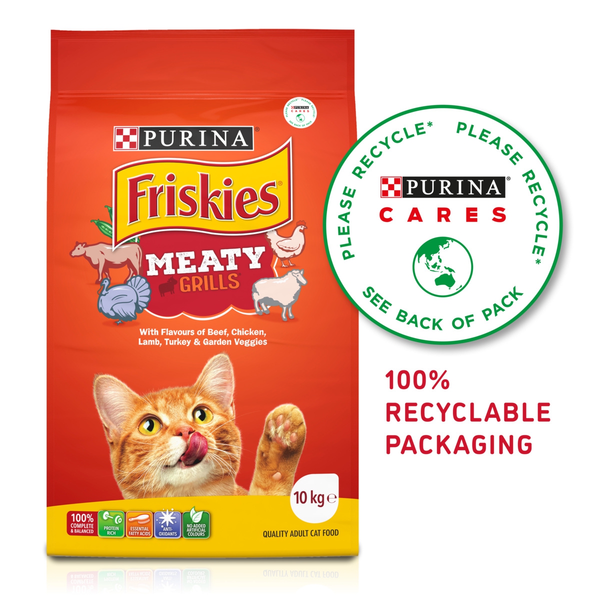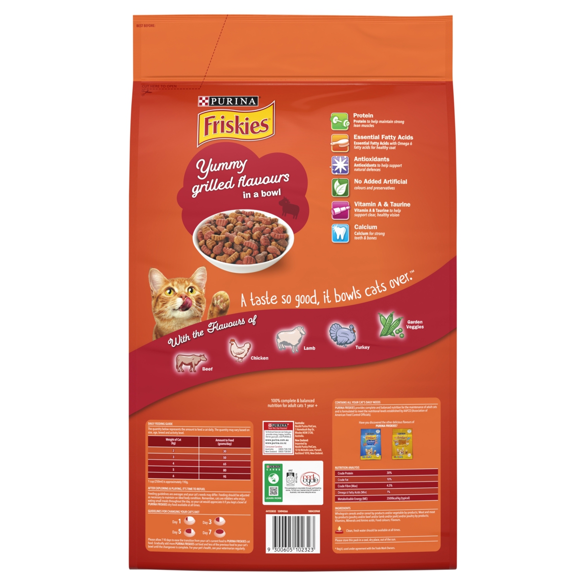 FRISKIES Meaty Grills® serves up grillicious morsels of flavour including beef, chicken, lamb, turkey and a touch of garden veggies. Think of it as an amusement park ride for your cat’s taste buds. Every tasty bowl comes alive with enticing aromas, appealing shapes and delicious flavours. FRISKIES dry cat food is 100% complete and balanced providing all the nutritional goodness your cat needs to live life to the fullest.