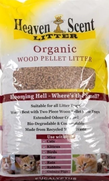 Heaven Scent Organic Wood Pellet Litter Works best with the wood pellet sieve trays, but is suitable for all litter trays. Extended odour control. Biodegradeable and compostable. can be used for cats, kittens, birds, mice, rats, rabbits and guinea pigs