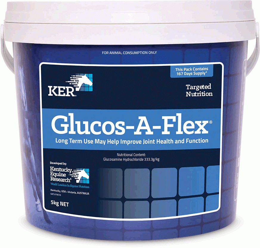 Feed 30g* (1 heaped scoop) horses and ponies in work, aged, or retired horses (supplying glucosamine at 16.7mg/kg body weight).
