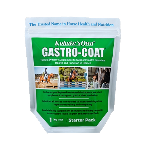 Kohnke’s Own Gastro-Coat is a natural, helpful supplement for gastric issues, with multiple actions in the stomach and small intestine to help horses feel more comfortable, improving digestive health and maintaining appetite.