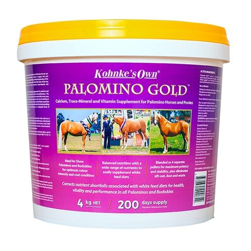 *Conditional Guarantee: Palomino Gold™ has been formulated and evaluated to enhance palomino coat colour with minimal risk of smutting when used as per the supplementation guidelines. Kohnke’s Own however, cannot unconditionally guarantee that supplementation will not result in coat colour variations in individual horses.