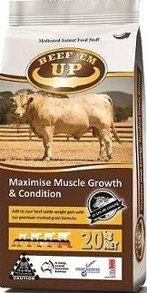 Fortified with a balanced supply of minerals and vitamins, Beef Em Up is the ideal feed to help develop strong, healthy cattle.