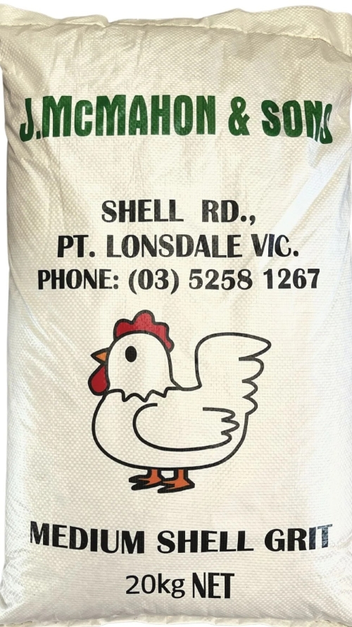 Mc Mahon's Medium Shell Grit is made from crushed sea shells and is a popular mineral & calcium supplement and aids digestion in birds. The fine grade is suited to smaller birds like budgies, canaries, cockatiels etc. Grit serves to help your chickens with digestion of grains, and is a source of calcium to aid in egg shell strength.
