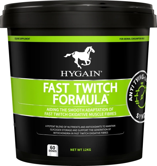 Fast Twitch provides specific nutrients to assist mitochondrial formation, anti-oxidant vitamins, selenium to enable glutathione peroxidase production and magnesium to address the metabolism imbalance caused by calcium flux on the muscle cell wall. For horses positive to the GYS1 gene (PSSM), feed a diet with minimum starch, combined with Fast Twitch pellets. For best results, Fast Twitch should be used in conjunction with an exercise program that maximises the use of the Fast Twitch Oxidative fibres.