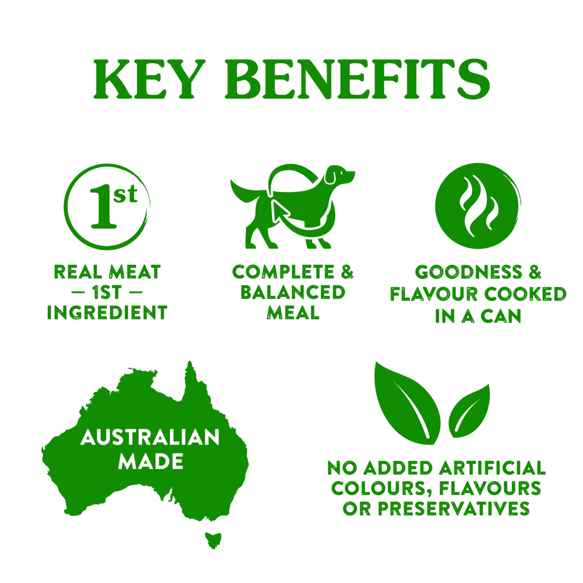 Made in NSW, Australia, this wet dog food offers goodness and flavour cooked in a can for convenience. Filled with essential nutrients for everyday health and free from artificial colours, flavours and preservatives, this is an excellent natural food choice for your pet.