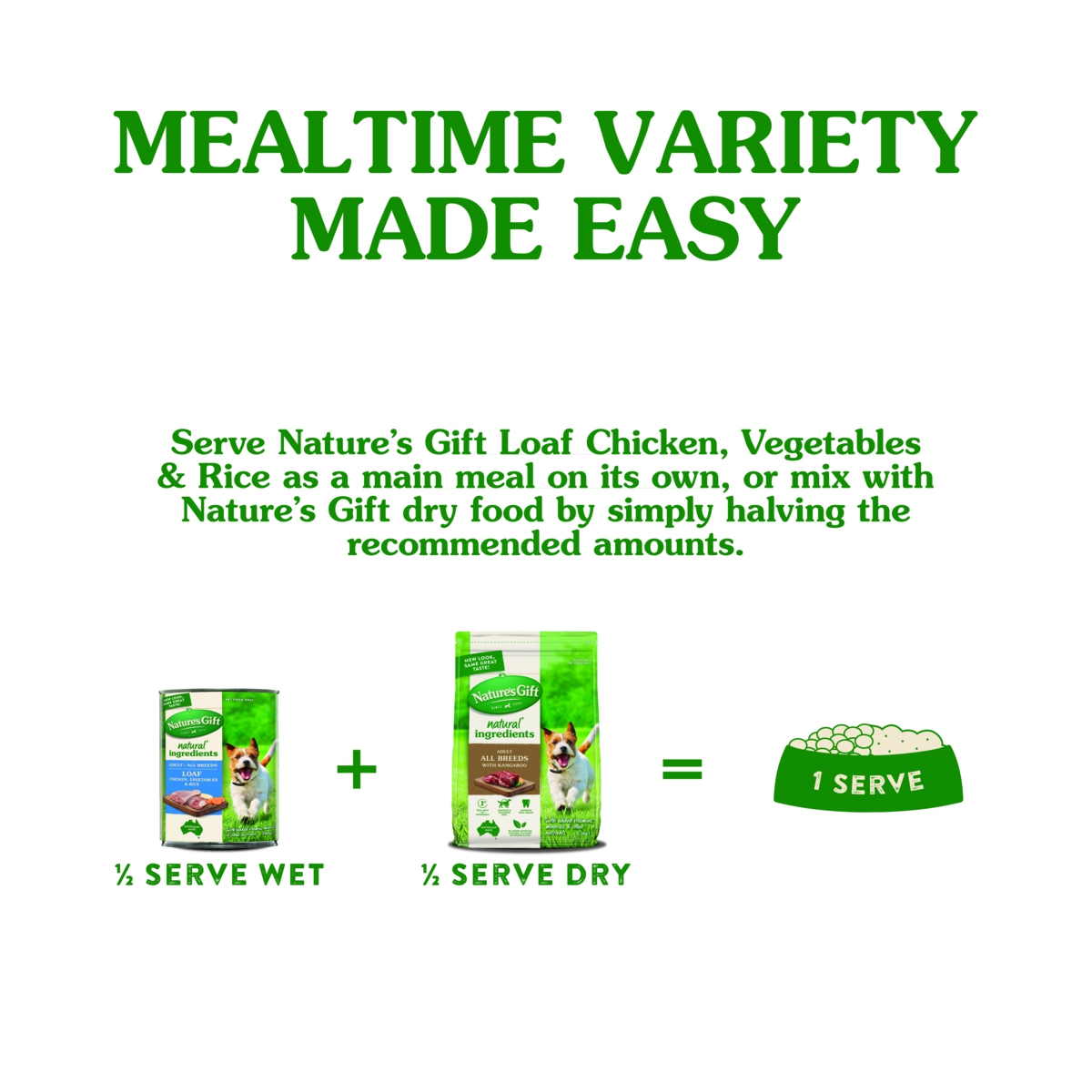 For exciting meal times that will keep your dogs tail wagging, you can also try mixing this with Natures Gift dry food too.
