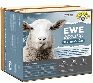 British breed and cross-breed sheep are more susceptible to copper poisoning than merinos and often do not require extra copper in their diets. For these sheep stressful events such as shearing tend to trigger copper release (toxicity). The Ewe Beauty 365 - No Copper block has all the benefits of balanced trace minerals, we have simply leaving the copper out to ensure these sheep are not subject to copper poisoning.