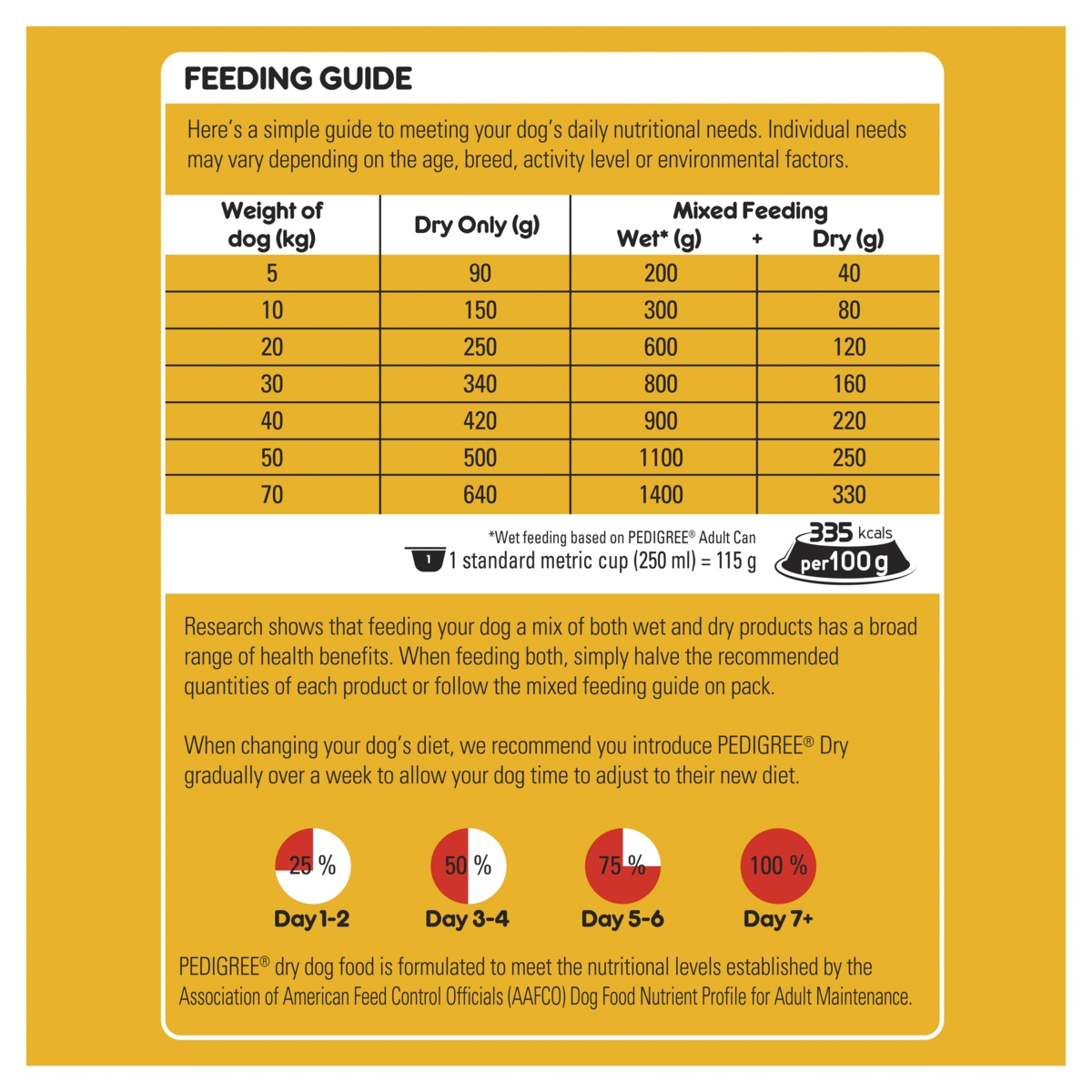 Heres a simple guide to meeting your dogs daily nutritional needs. Individual needs may vary depending on the age, breed, activity level or environmental factors.
