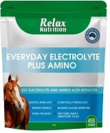 Relax Everyday Electrolyte plus Amino is a highly concentrated balanced formula designed to replace lost electrolytes during exercise and sweating. This filler-free, sugar-free, and bi-carbonate free supplement helps maintain your horse's essential minerals, reducing dehydration and symptoms such as fatigue, tying up, muscle weakness, and cramps.