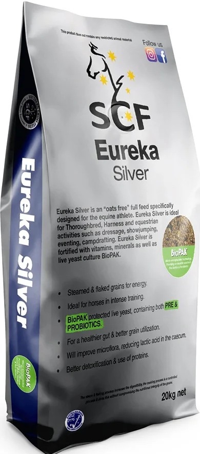 Eureka Silver contains the latest technology in protected 'Live Yeasts' containing both Pre & Probiotics BioPAK. The Live Yeast enhances fibre digestibility maintaining the hindgut PH within normal range, especially with grain feeds. Also improves microflora balance & reducing lactic acid in the caecum (gut), & improves feed utilisation, aids in recovery in athletes & reduces the effects of heat stress.
