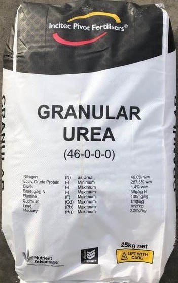 Urea, at 46% nitrogen (N), is the most concentrated solid nitrogen fertiliser. This means there is less to freight and handle. It is also one of the most economical nitrogen fertilisers.