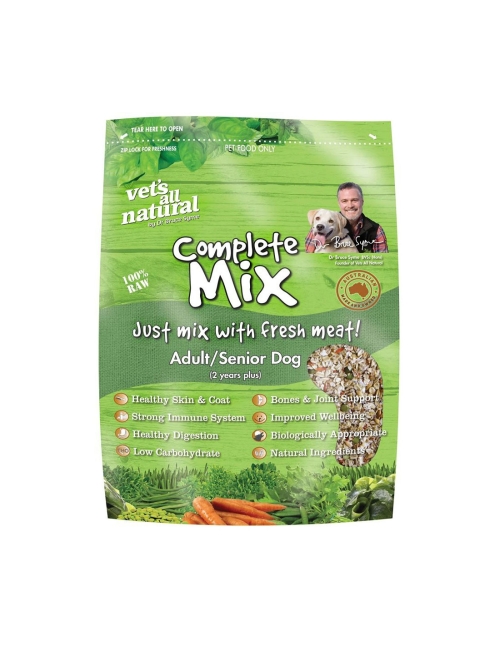 Vets all Natural Complete Mix Adult and Senior Dog is a completely raw diet designed to provide a complete balanced diet, with a high vegetable and roughage content.