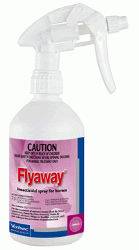 FLYAWAY should also be applied to stable areas, rugs etc. to control insects in the horse’s surroundings as part of an integrated insect control program. Thoroughly spray all areas where flies land around where horses live and work. Spray horse gear and bedding for additional protection. When spraying gear be careful to check safety on delicate materials.