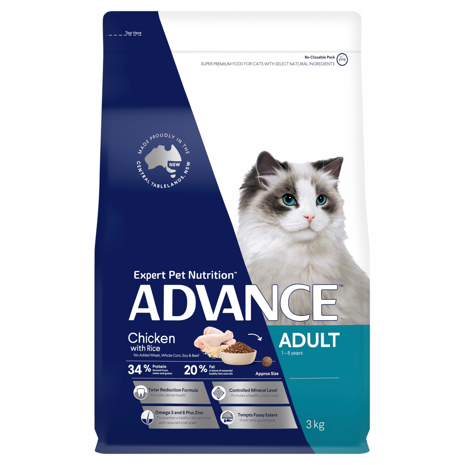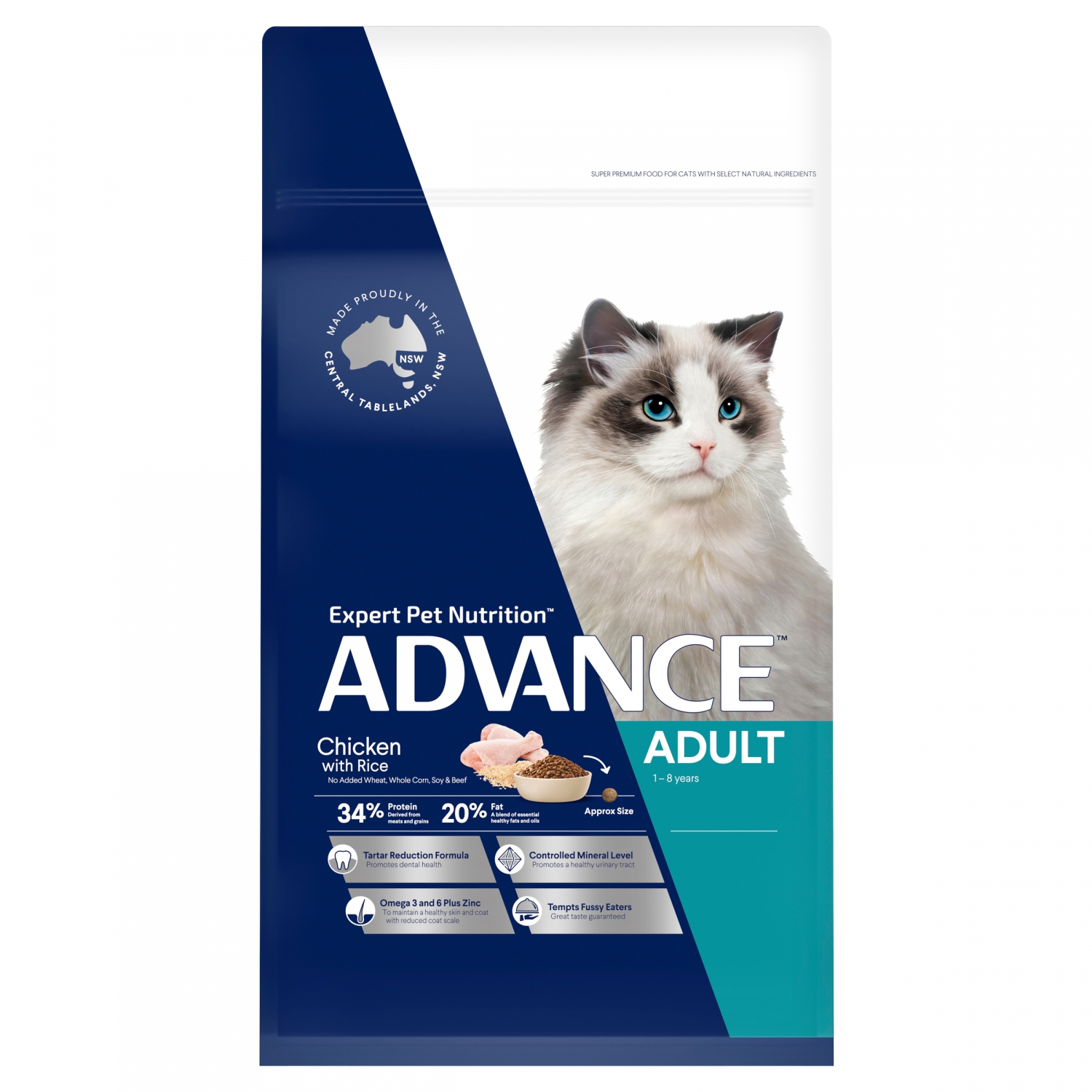 ADVANCE™ products are scientifically formulated to help improve cat health. Made locally from our home in the Central Tablelands of NSW by leading cat nutritionists for over 20 years. A unique knowledge of the needs of Australian cats sees us sourcing and blending high quality ingredients to create a range of specifically tailored foods.