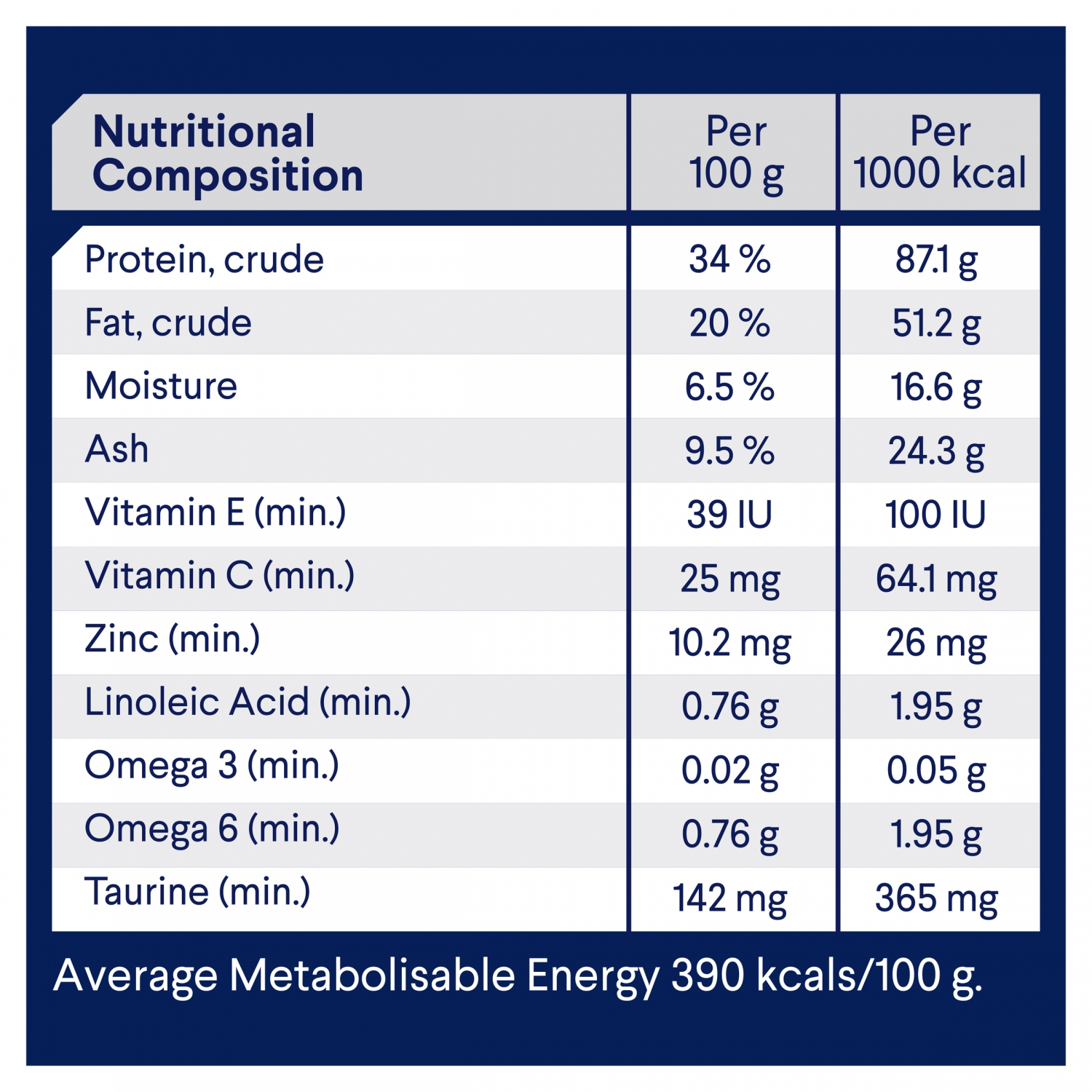 Nutritional Composition Per 100g Per 1000 kcal