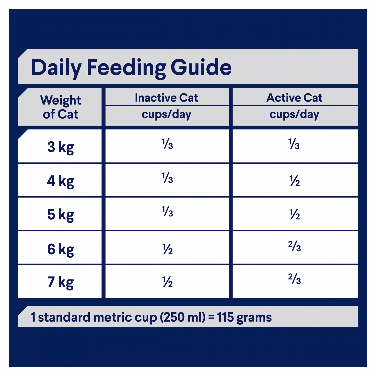 78 Feeding days based on 4 kg adult cat inactive feeding guide. When feeding both ADVANCE™ Dry and Wet food, simply halve the recommended quantities of each product and let your pet enjoy the benefits of both formats.