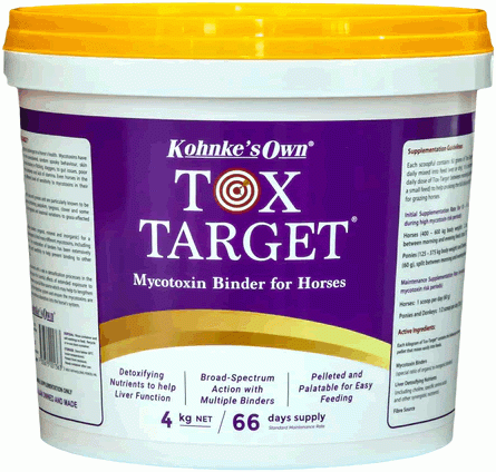 Long term mycotoxin exposure can negatively impact horse health and wellbeing. Tox Target contains nutrients that help to ‘detoxify’ the liver, kidneys and other organs that may have been affected by ingestion of mycotoxins.